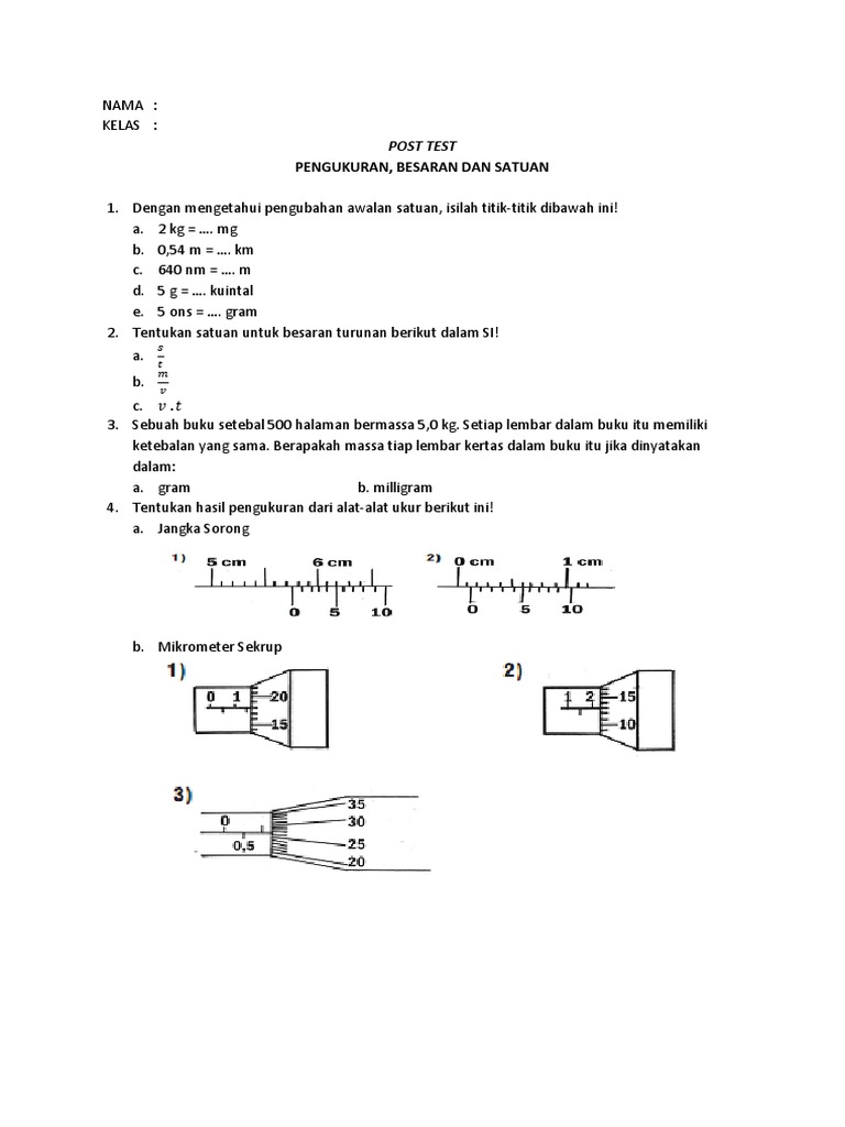Pahami Pola Soal Un Fisika Skl By Skl Pdf Free Download from docplayer.info Berapakah hasil pembacaan dari pengukuran mikrometer di atas. Contoh soal 2 perhatikan gambar mikrometer sekrup berikut ini. Hasil = skala tetap + skala nonius. Skala terkecil mikrometer sekrup adalah 0,01 mm, artinya panjang minimal benda yang bisa diukur oleh alat ini adalah 0,01 mm dengan ketelitian setengah dari skala terkecilnya, yaitu 0,005 mm atau 0,0005 cm. Skala nonius = 30 × 0,01 mm = 0,30 mm. Hasil ini memiliki ketelitian sebesar 0.01 mm. Mikrometer sekrup manual terdiri dari skala utama dan nonius. Maka penyajian atau pelaporan data dari tebal kelereng tadi adalah :